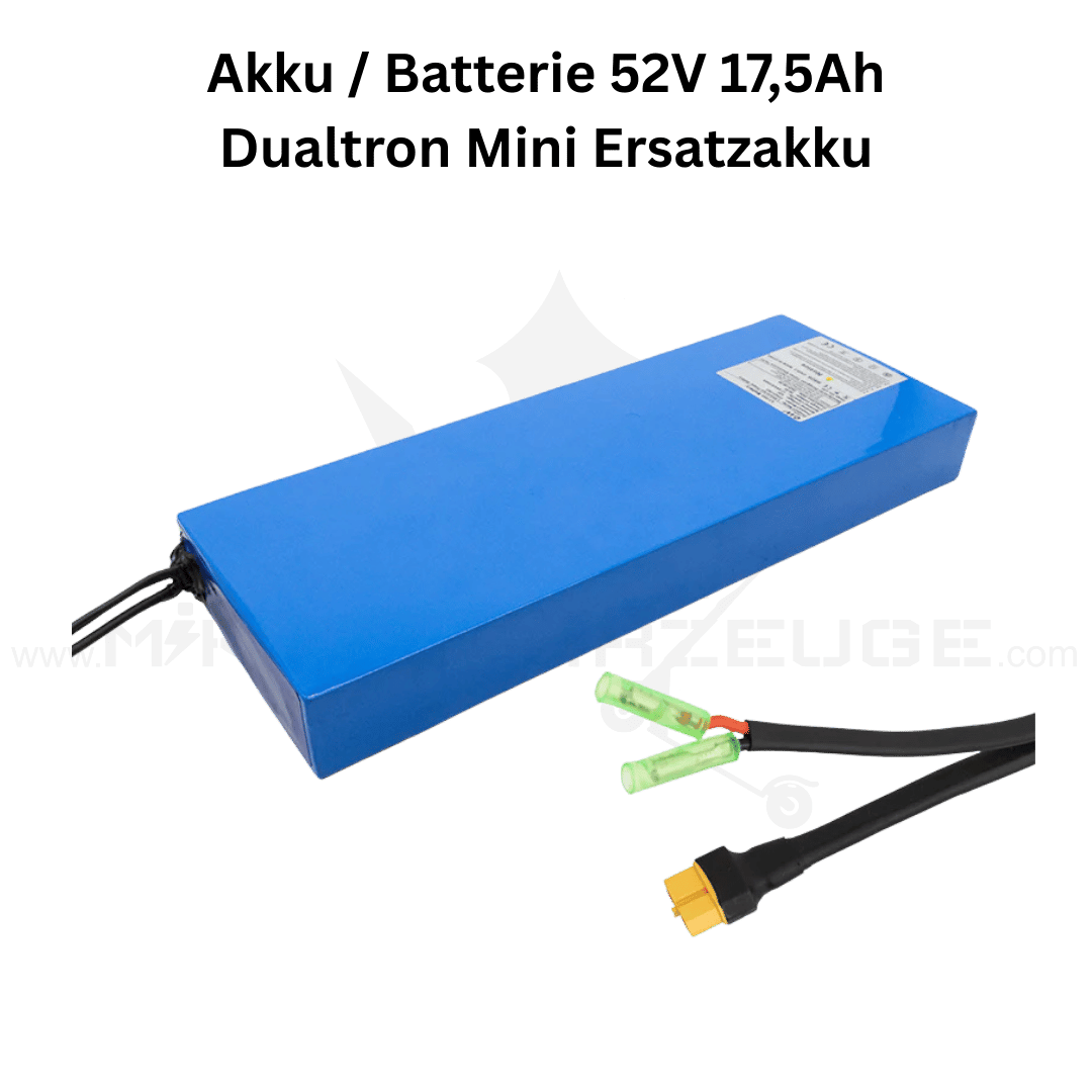 Der 52V 17,5Ah Akku für Dualtron Mini ist ein hochwertiger Lithium-Ionen-Ersatzakku mit hoher Energiedichte und zuverlässiger Leistungsabgabe. Mit 910 Wh Kapazität bietet dieser Akku eine spürbar verbesserte Reichweite und konstante Performance – ideal als Ersatz bei einem defekten oder gealterten Originalakku.