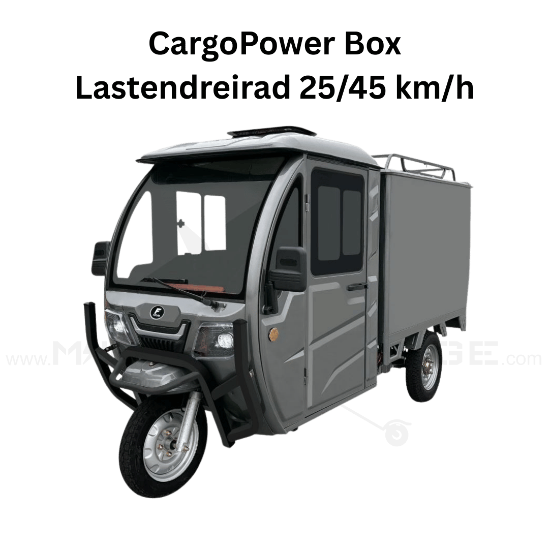 CargoPower Cabin Box, Elektro Lastendreirad mit Box, E-Lastendreirad Lieferfahrzeug, Elektro Transportdreirad geschlossen, Cargo Trike LiFePO4, Elektro Lieferdreirad Förderung