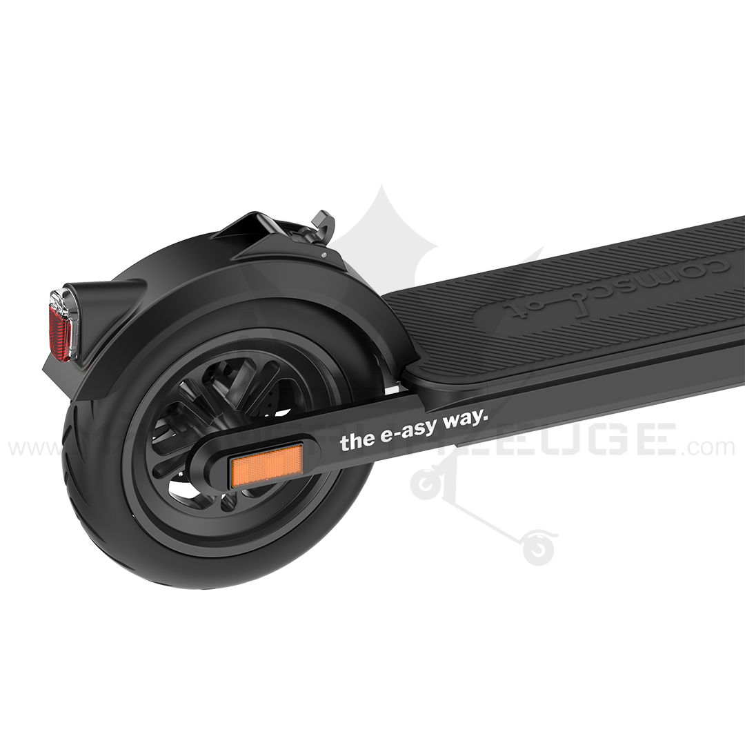 Dabei überzeugt der Comscoot Eco mit seiner starken Leistung: Der 350 Watt Motor (Nominalleistung) und 650 Watt (Peakleistung) sorgen für ein konstantes Abrufen der Leistung und meistern sogar Steigungen von bis zu 15%.