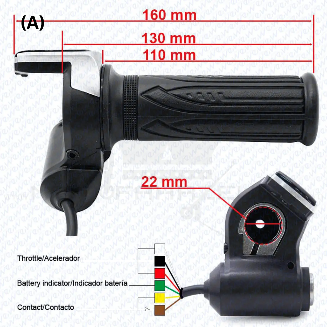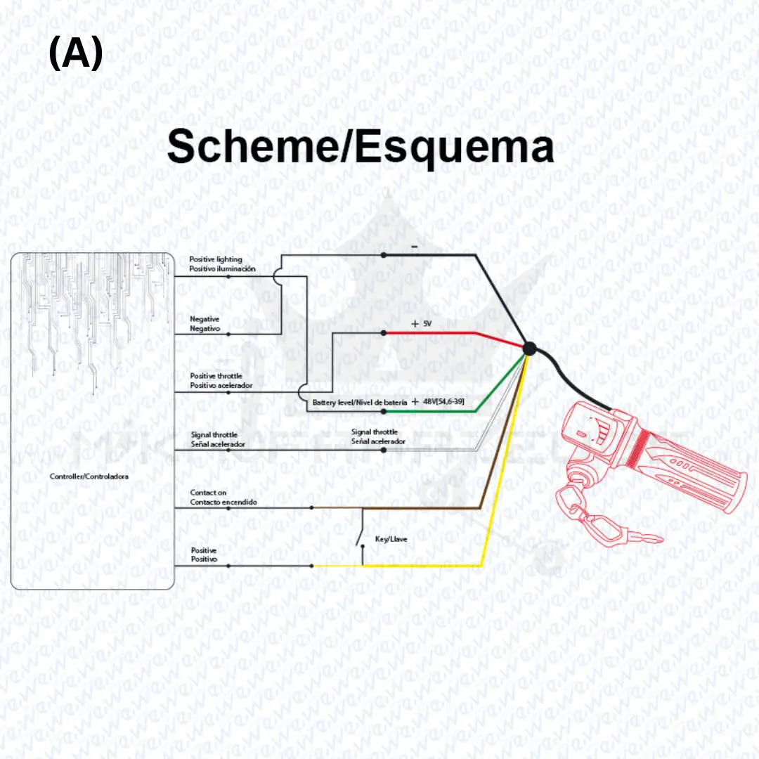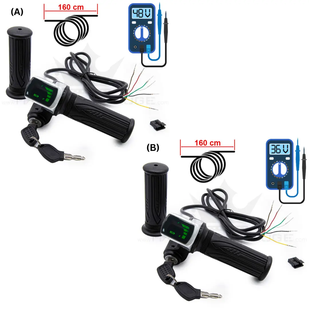 Sie haben die Wahl zwischen zwei Versionen: (A) mit 48V und (B) mit 36V, um sicherzustellen, dass der Drehgasgriff perfekt zu Ihrer spezifischen Fahrzeugkonfiguration passt.
