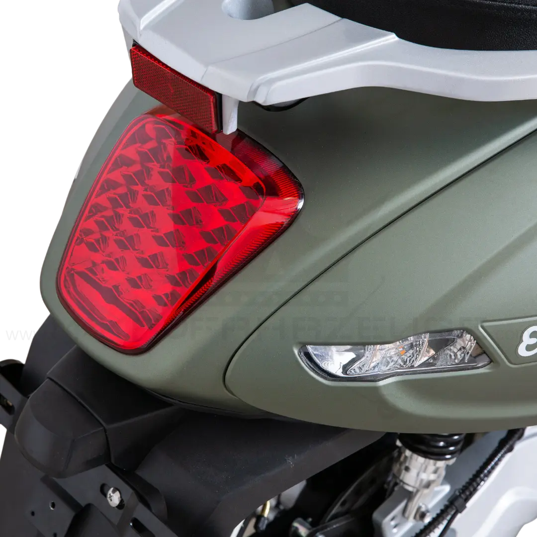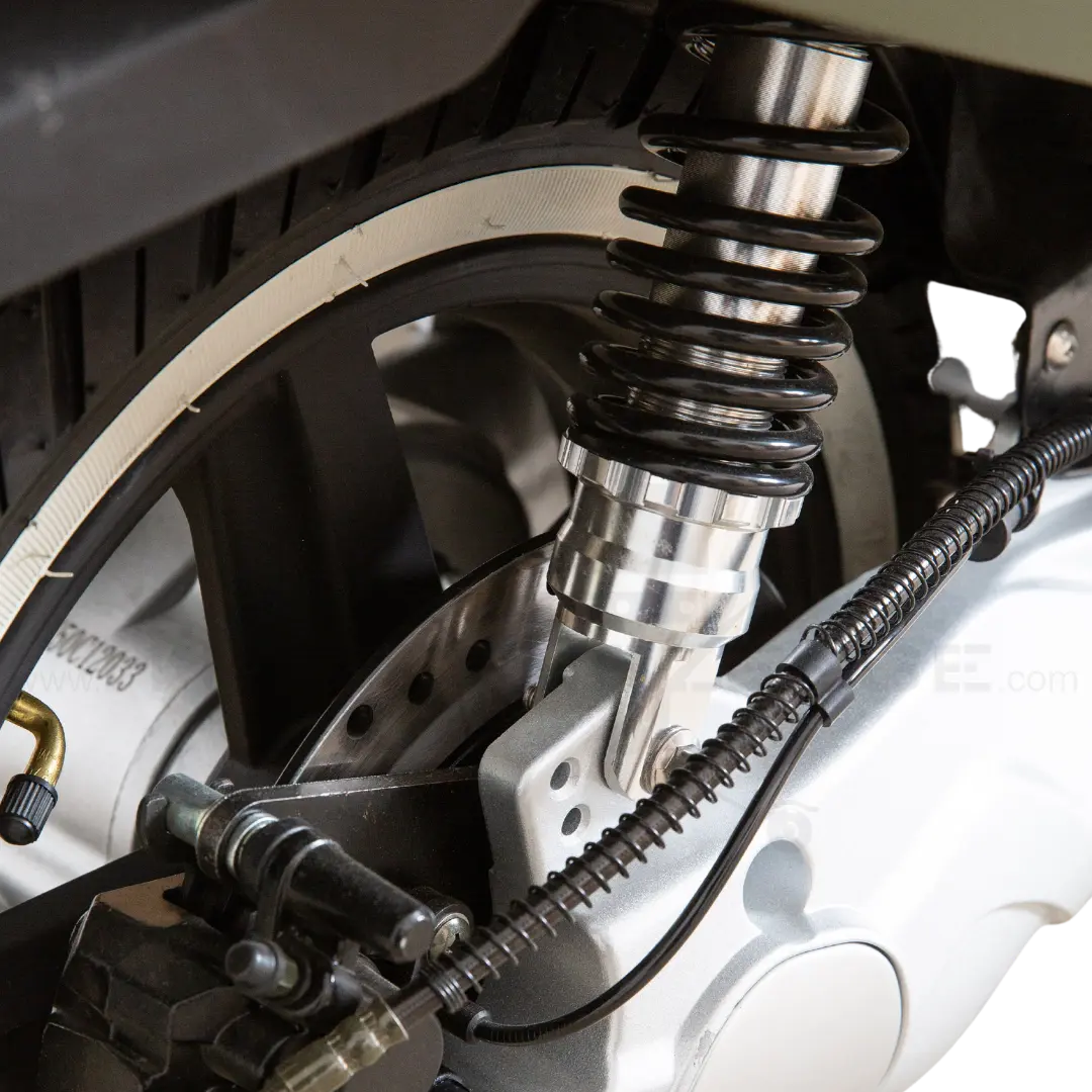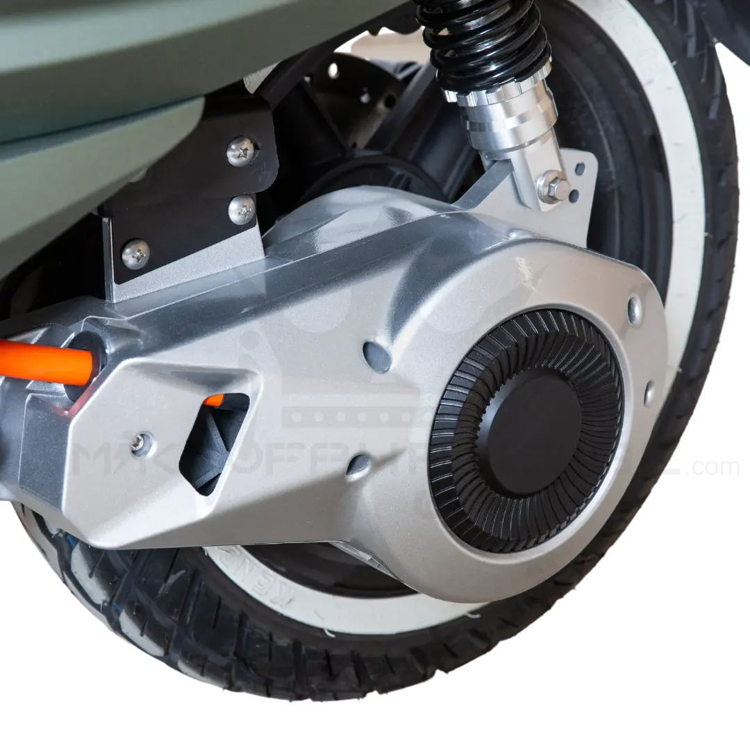Der 5000-Watt-Motor beschleunigt schnell auf eine Höchstgeschwindigkeit von 90 km/h. Steigung stellen dabei kein Problem dar.