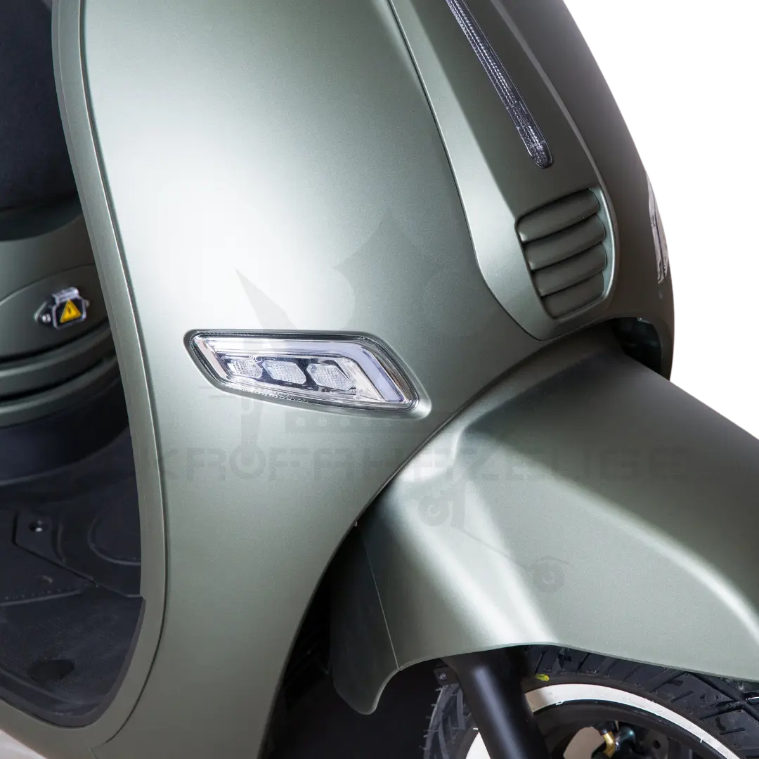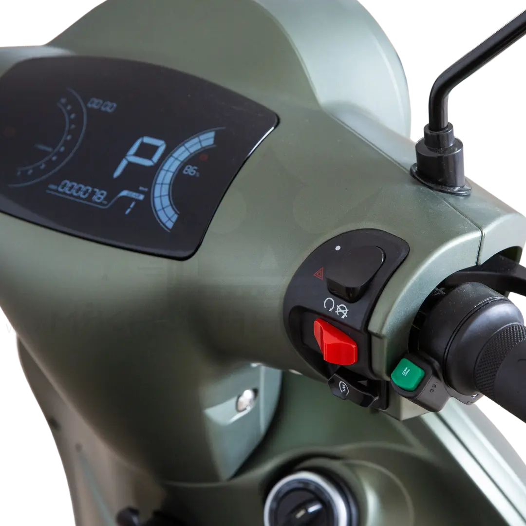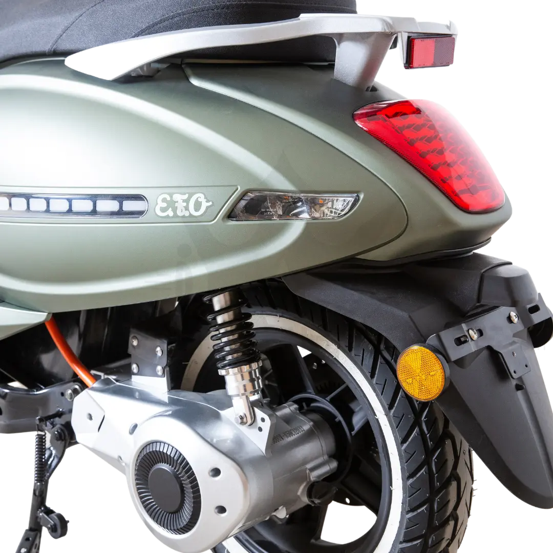 Der 5000-Watt-Motor beschleunigt schnell auf eine Höchstgeschwindigkeit von 90 km/h. Steigung stellen dabei kein Problem dar.