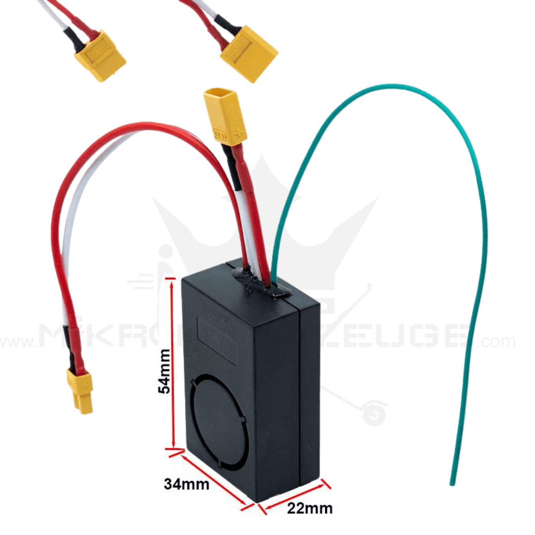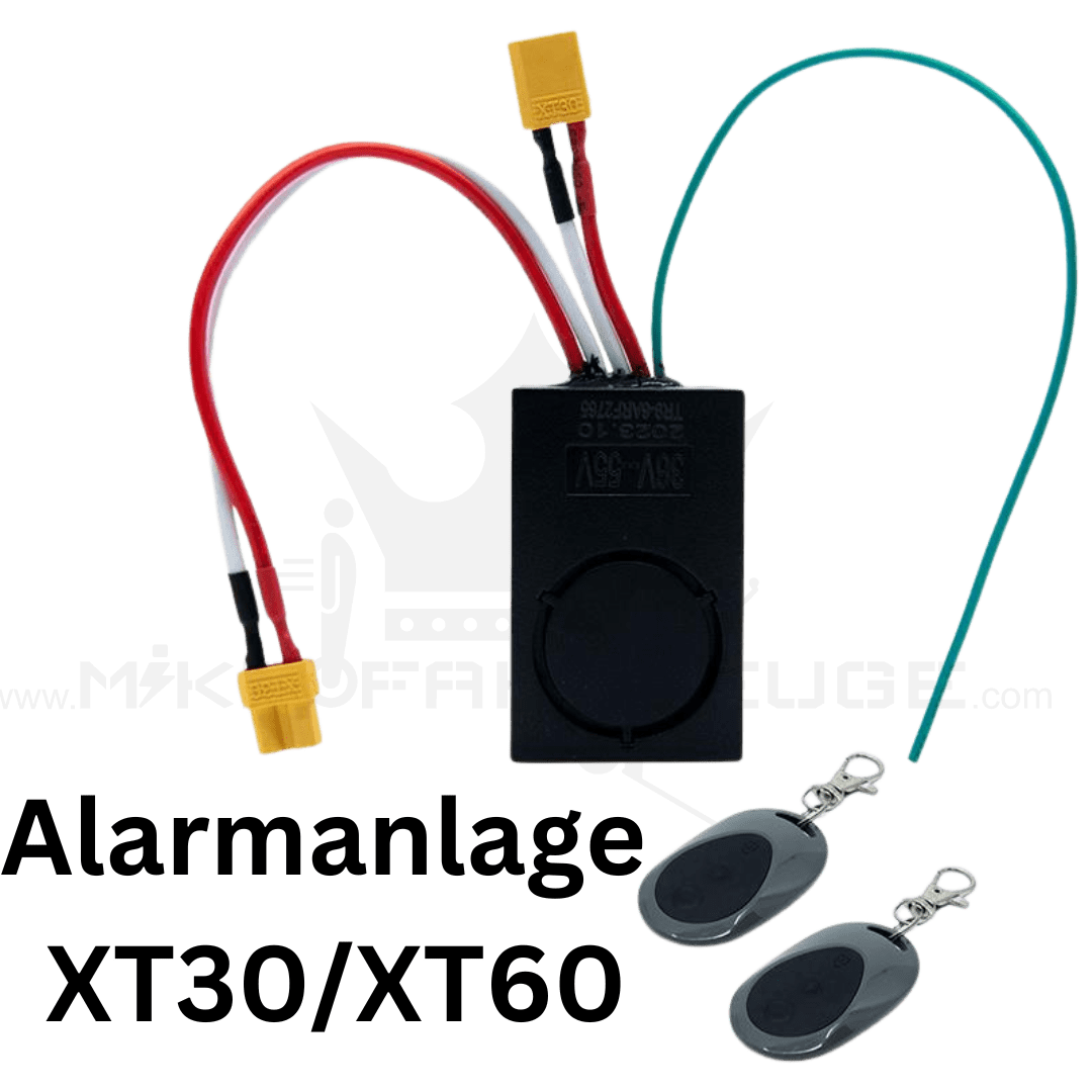 Diese Alarmanlage kombiniert Sicherheit und Flexibilität in einem kompakten Design. Mit der Möglichkeit, zwischen XT30 und XT60 Steckern zu wählen, können Sie sicherstellen, dass Ihre Wegfahrsperre genau auf die Anforderungen Ihres Fahrzeugs abgestimmt ist – egal, ob es sich um ein kleines E-Bike oder einen leistungsstarken E-Scooter handelt.