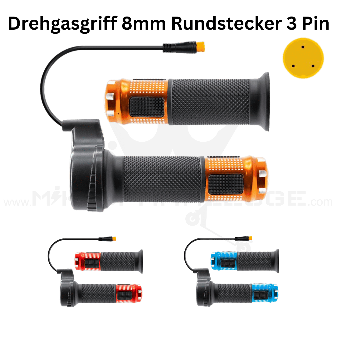 E-Scooter Drehgasgriff mit 8 mm Rundstecker (3-Pin) – Alu-Griffset in Rot, Orange oder Blau