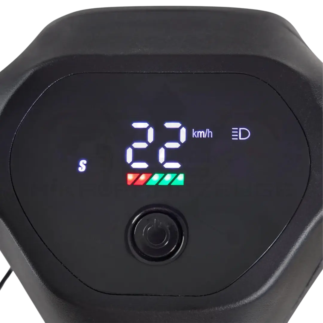 Das 78x56mm große Display zeigt alle wichtigen Informationen auf einen Blick. Die 50 Lux Frontleuchte und ein seitlicher Leuchtring sorgen für ideale Sichtbarkeit und machen das Fahren bei Dämmerung oder Dunkelheit sicherer.