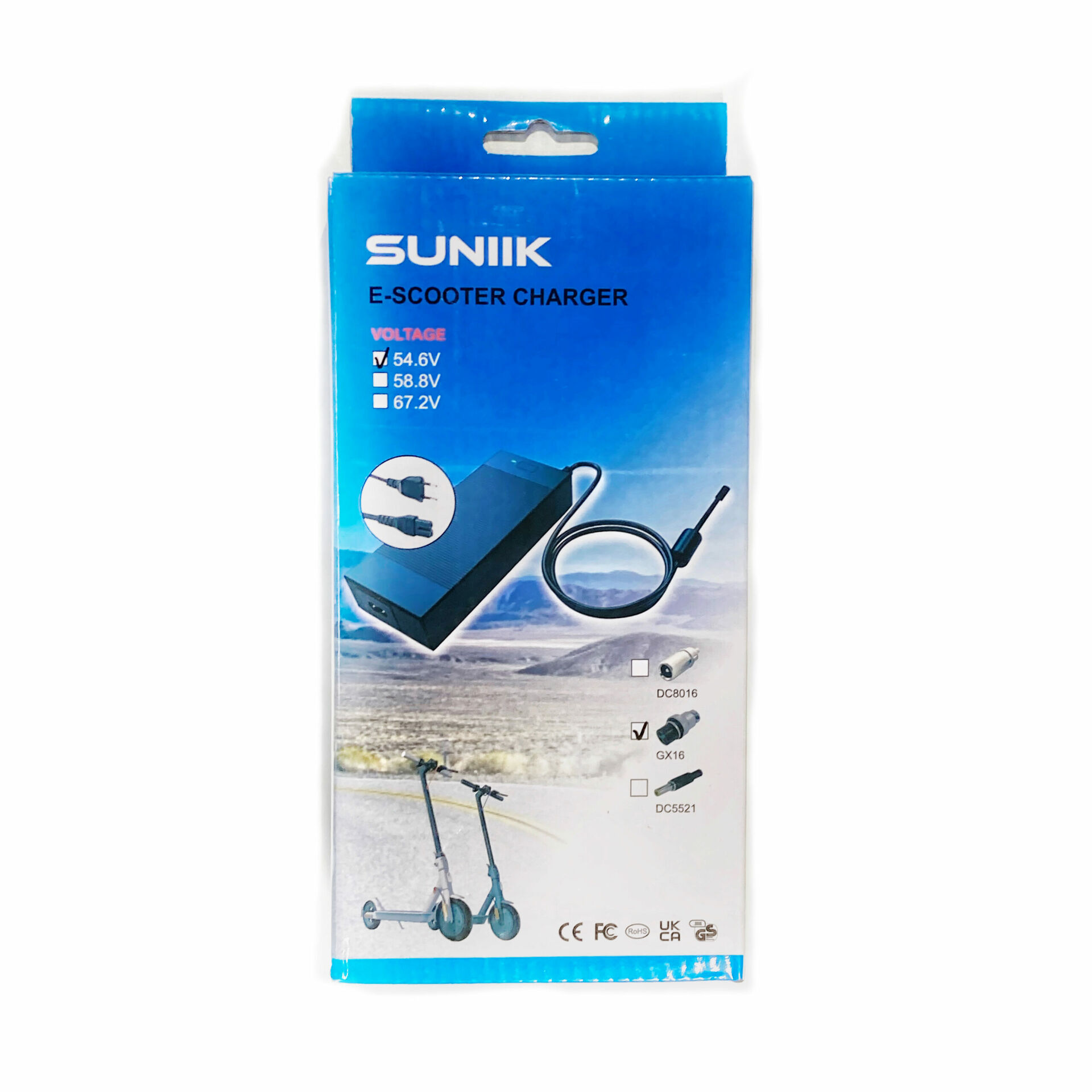 Wichtiger Hinweis: Stellen Sie sicher, dass die Ladeschlussspannung Ihres E-Scooters mit der Spezifikation dieses Ladegeräts übereinstimmt, um eine sichere und optimale Ladung zu gewährleisten.