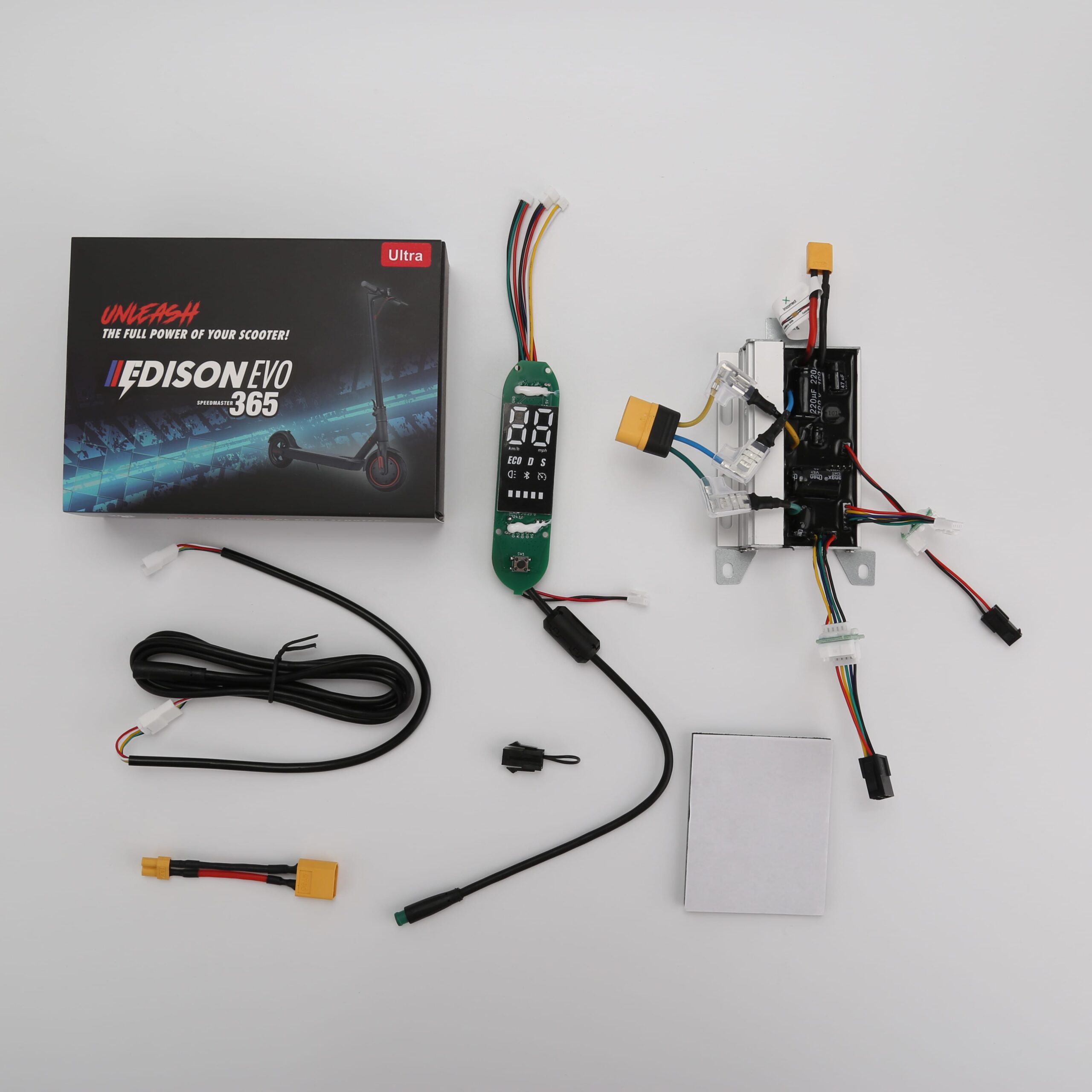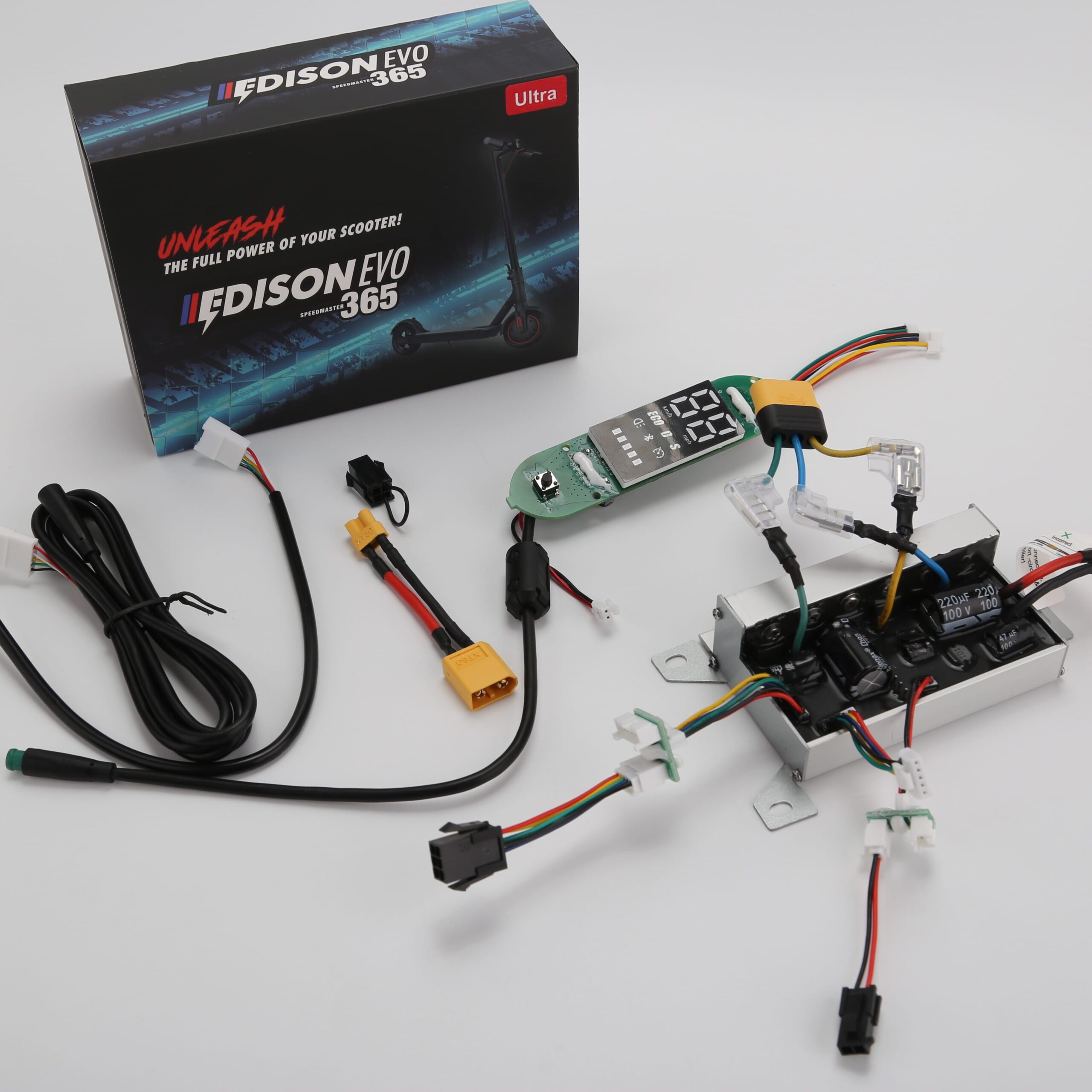 Das EDISON EVO Speedmaster ULTRA ist das modernste und leistungsstärkste Tuning-Kit speziell für den Xiaomi Mi4 Electric Scooter 4 Ultra. Es wurde gezielt für dieses Modell entwickelt und besteht aus einem hochwertigen Steuergerät, einem kompatiblen Display und dem passenden Hauptverbindungskabel – alles vormontiert für eine einfache Plug & Play Installation. Du brauchst kein Lötkolben, keine Spezialkenntnisse – einfach einbauen und loslegen!