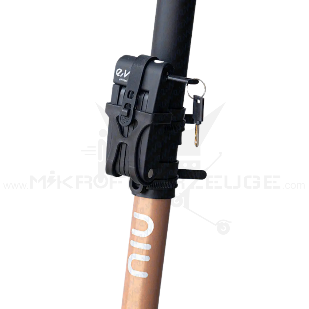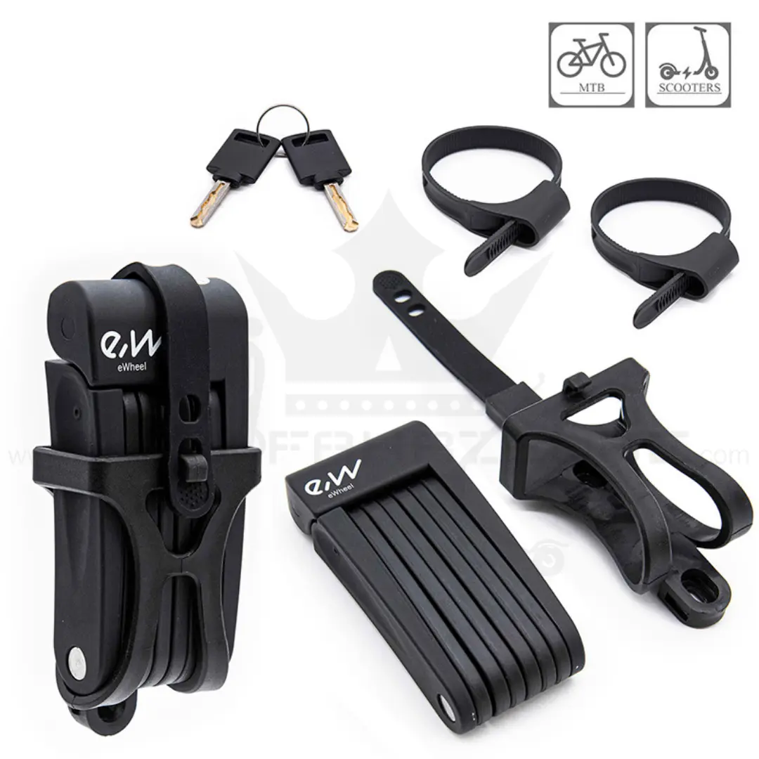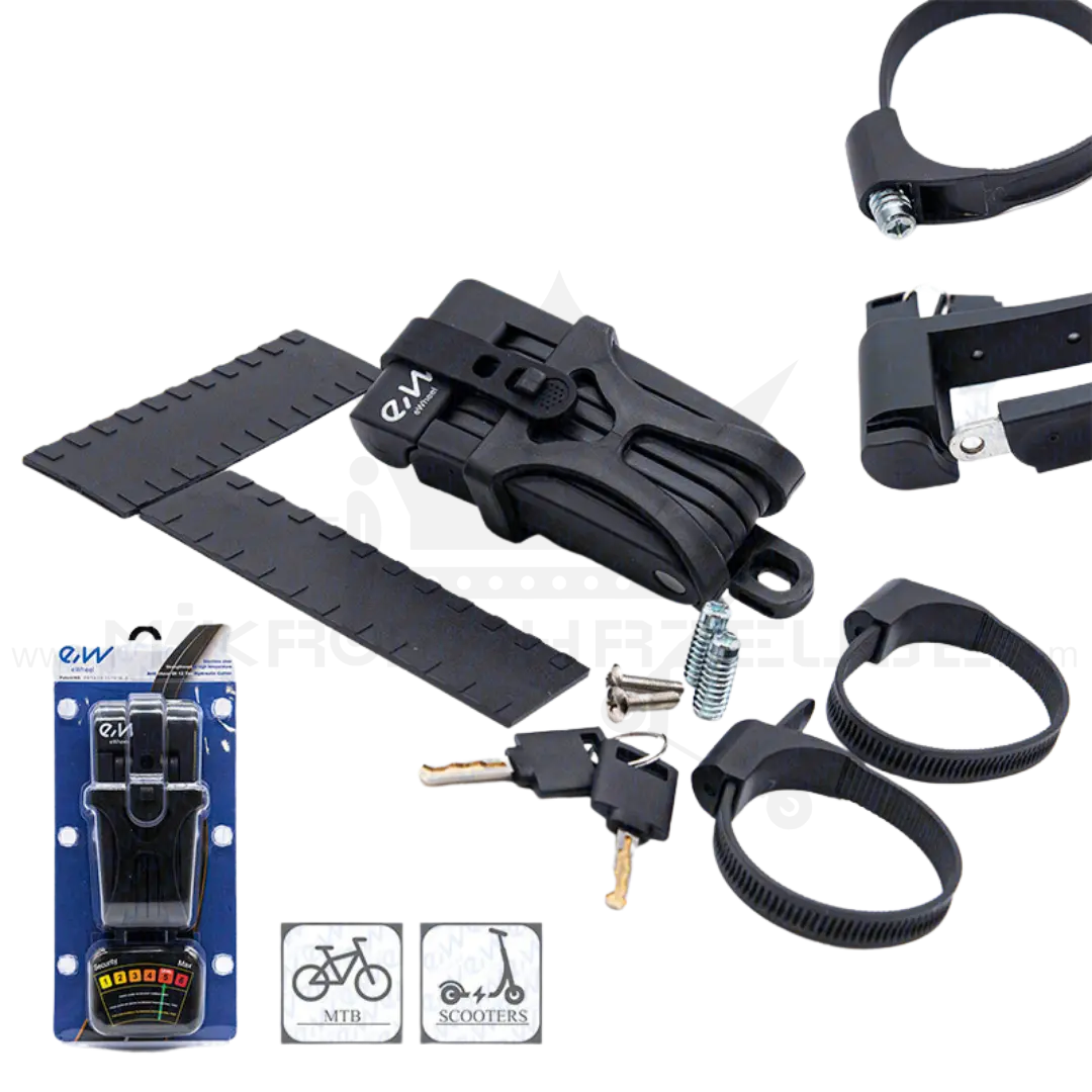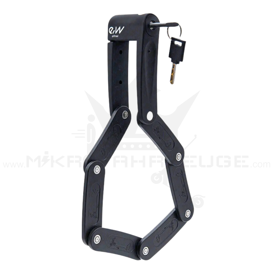 Sichere dir jetzt das EWHEEL Faltschloss und gewinne ein beruhigendes Gefühl, wenn du dein Fahrrad oder deinen E-Scooter parkst. Keine Angst mehr vor Dieben, die dir deine Mobilität stehlen wollen!