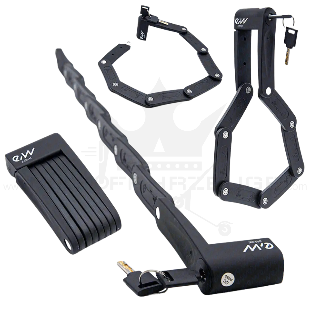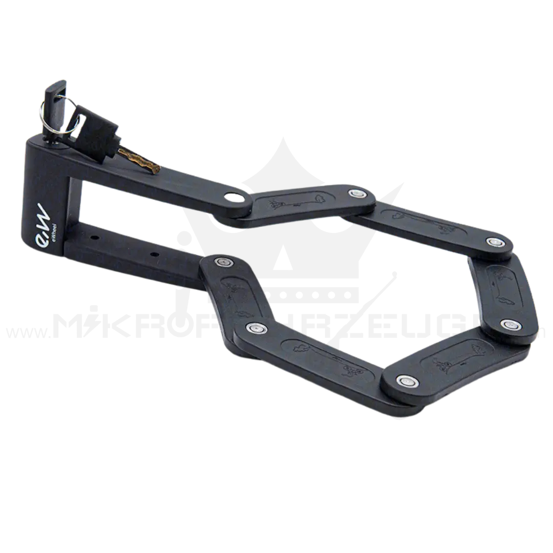 Warte nicht länger! Bestelle jetzt das EWHEEL Faltschloss und schütze dein Fortbewegungsmittel mit Stil und Zuverlässigkeit. Sicherheit geht vor – vertraue auf das Schloss, das hydraulischen Schneidscheren von bis zu 12 Tonnen trotzt!
