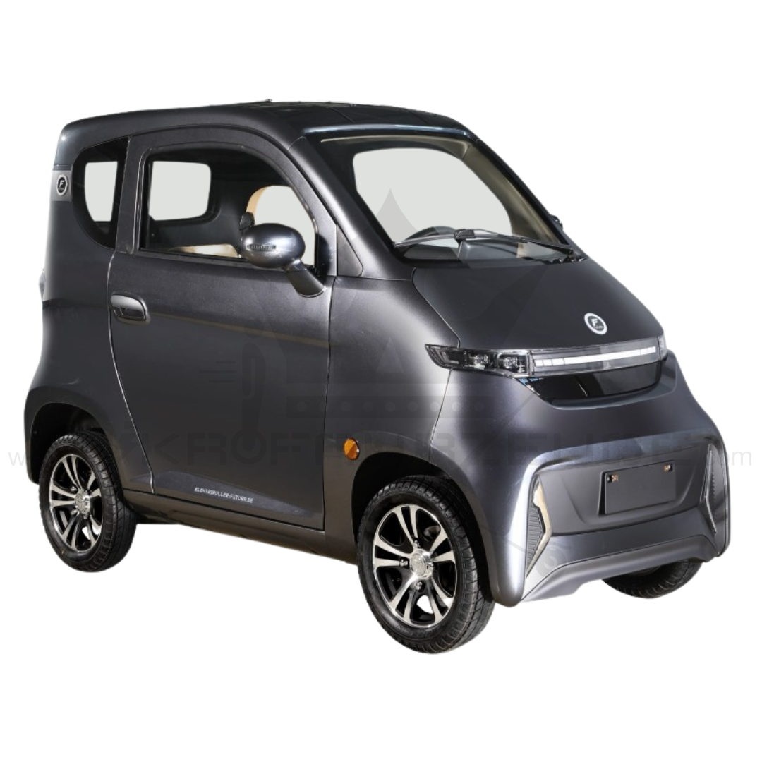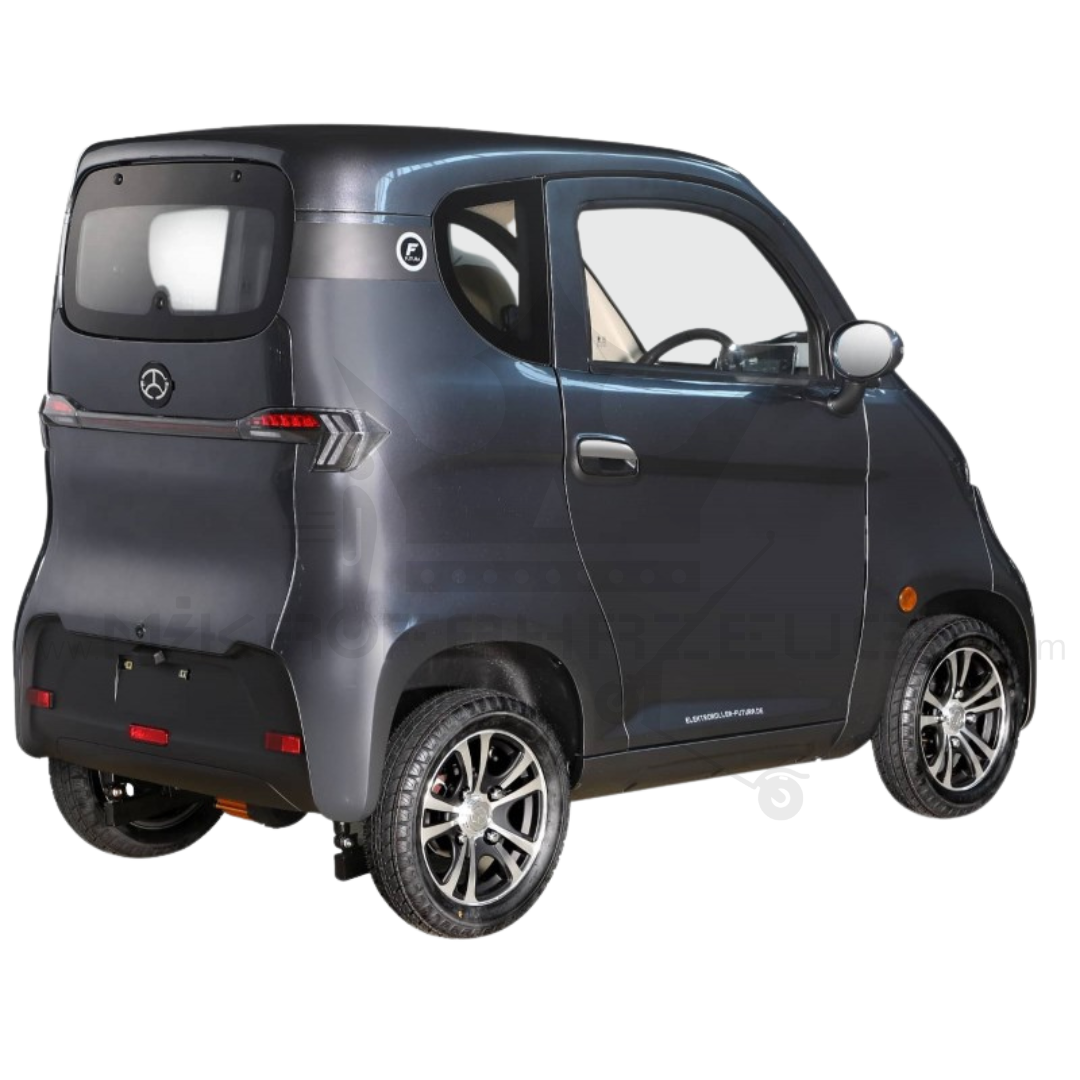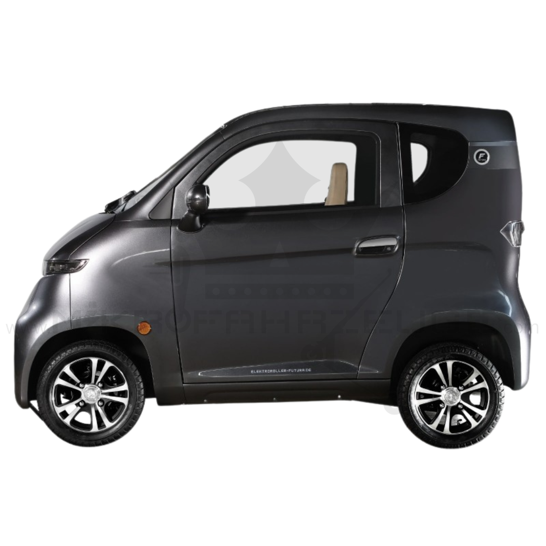 „Futura TWO“ ist ein elektrisch betriebener Kabinenroller, der vollverkleidet ist und Platz für 2 Personen bietet. Das Fahrzeug ist umweltfreundlich und kann an jeder haushaltsüblichen Steckdose aufgeladen werden. Der Fahrersitz ist individuell einstellbar und auf der Rückbank ist Platz für eine weitere Person sowie für Einkäufe. Der 2000 Watt-Elektromotor ermöglicht eine Geschwindigkeit von 25km/h oder 45 km/h und das Fahrzeug kann Steigungen von 20% bewältigen. Es ist perfekt gegen Wind und Wetter geschützt.