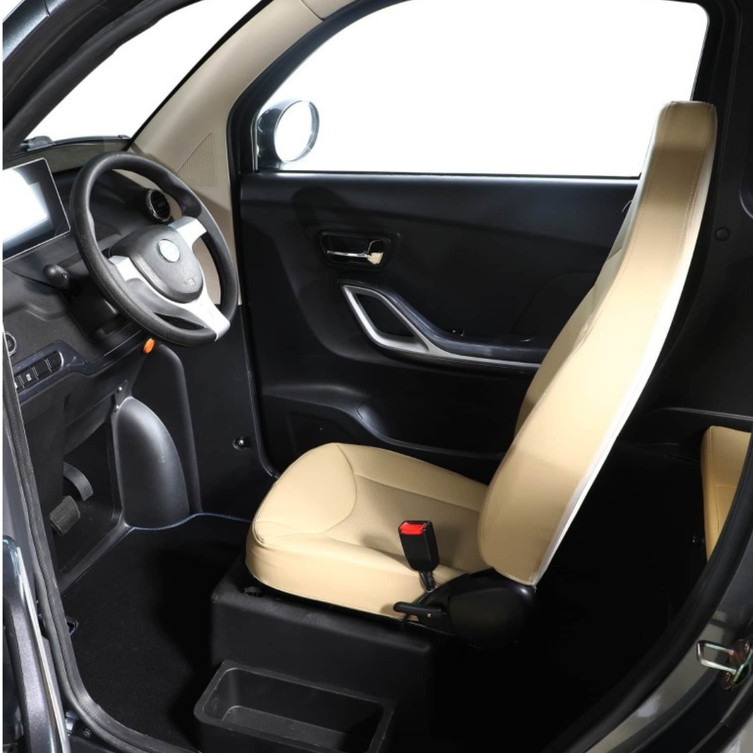 Der Elektro-Kabinenroller „FUTURA TWO“ bietet eine schnelle und sichere Fortbewegung. Mit dem herausnehmbaren Lithium-Akku (60V/52Ah) hat das Fahrzeug eine Reichweite von bis zu 60 km, die auf 120 km erhöht werden kann, indem man zwei weitere Akkus unter der Rückbank platzieren. Der Akku ist leicht zu transportieren, da er ca. 12 kg wiegt und über Tragegriffe verfügt. Er kann entweder zu Hause oder im Fahrzeug aufgeladen werden, durch das 10Ah Schnellladegerät ist eine vollständige Ladung in 4-5 Stunden möglich. Die Fahrsicherheit wird durch die hydraulische Scheibenbremsenanlage vorne und hinten sowie durch die Handbremse gewährleistet. Der Lenker ist mit einem Digitaltacho ausgestattet, der über die Geschwindigkeit und die aktuelle Akkuladung informiert. Zusätzlich ist eine Rückfahrkamera verbaut, die das Einparken erleichtert.