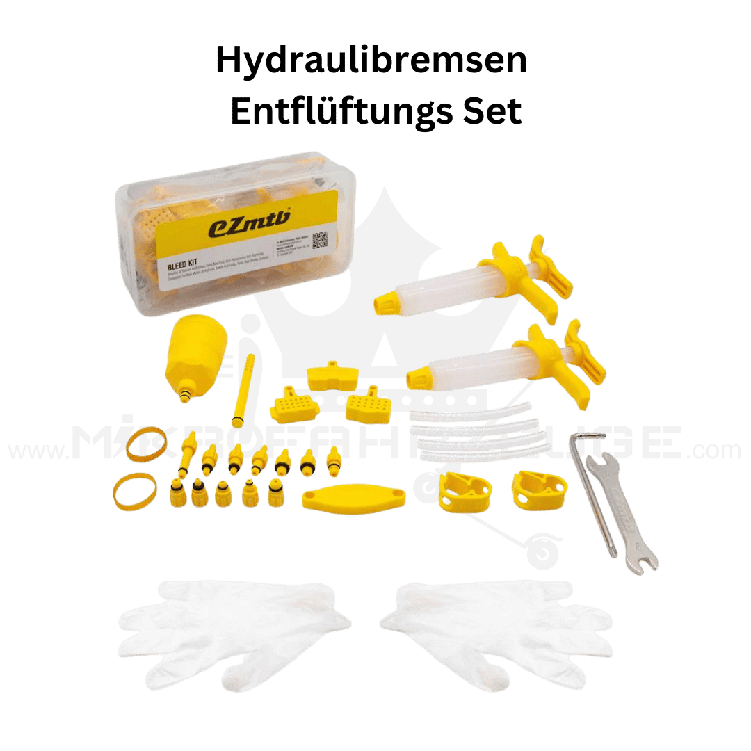 Das ultimative Hydraulikbremsen Entlüftungsset ist das unverzichtbare Werkzeug für alle Besitzer von E-Bikes, Elektrofahrrädern und E-Scootern mit hydraulischen Bremssystemen.
