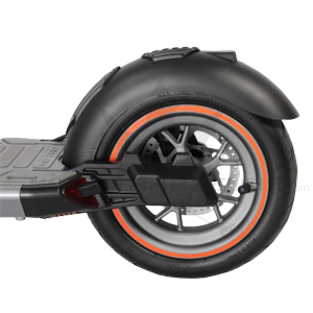 Der Scooter ist mit einem Bremssystem ausgestattet, das sowohl eine Antiblockierfunktion als auch eine Energierückgewinnungsfunktion hat. Die Vorderräder sind mit diesem Bremssystem ausgestattet. Das Hinterrad ist hingegen mit einer großen gelochten Bremsscheibe ausgestattet, die für mehr Bremskraft sorgen kann. Beim Bremsen werden die vorderen und hinteren Bremssysteme nacheinander aktiviert, um den Bremsweg zu verkürzen.