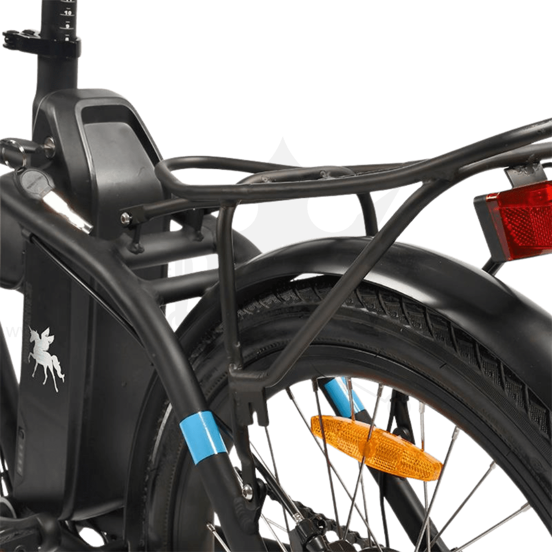 • Hinterer Gepäckträger: Der praktische hintere Gepäckträger bietet genügend Platz für Ihre Einkäufe oder andere Gegenstände.