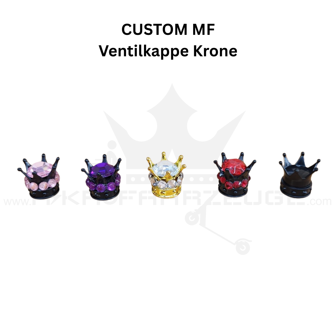 Verleihe deinem Auto, Motorrad oder E-Scooter den letzten Feinschliff mit unserer exklusiven Ventilkappe im Kronen-Design. Diese hochwertigen Custom Ventilkappen sind in verschiedenen Farben erhältlich und passen auf alle gängigen Autoventile (Schrader-Ventile).