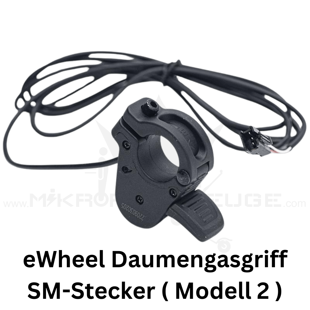 Entdecken Sie das zweite Modell von Ewheel`s Daumengas, mit schwarzem 3-Pin SM-Stecker und einem 1,6m langem Kabel – das Upgrade, das Ihre Rollerfahrung revolutioniert.