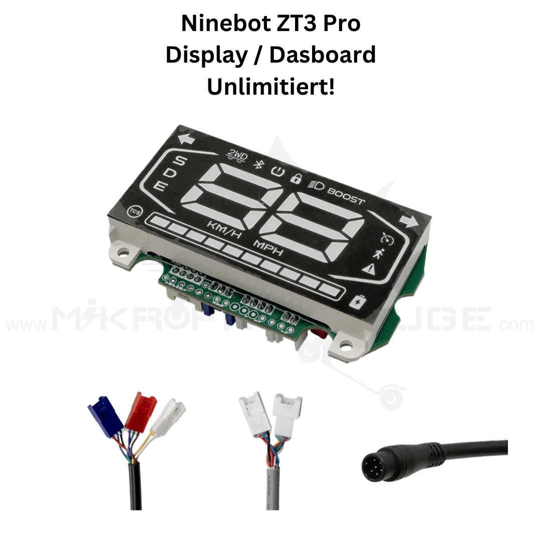 Mit dem internationalen Display für den Ninebot ZT3 rüstest du dein Fahrzeug technisch auf die globale Version um. Das Dashboard ersetzt das originale Cockpit 1:1 und arbeitet mit der internationalen Firmware – ohne softwareseitige 20/22 km/h Limitierung.