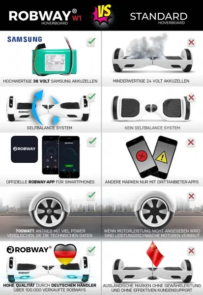 Hole dir jetzt das ROBWAY W1 Hoverboard – das vielfach genutzte und bewährte Markenprodukt nach deutschen Qualitätsstandards.