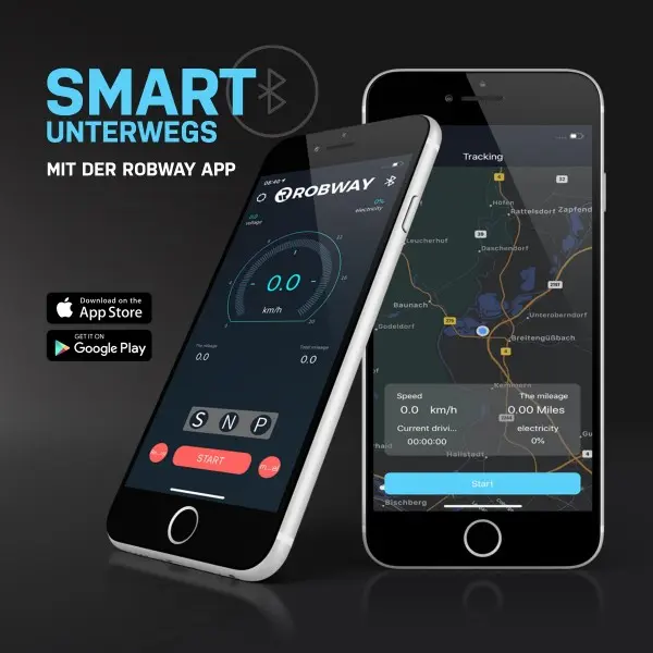 Mit der smarten ROBWAY Hoverboard App hast du jederzeit wichtige Infos wie Geschwindigkeit, Akkustand, Temperatur und Gesamtkilometer im Blick. Außerdem kannst du die Einstellungen wie die Höchstgeschwindigkeit, Antriebskraft, Lenkempfindlichkeit und den Ruhemodus individuell anpassen.