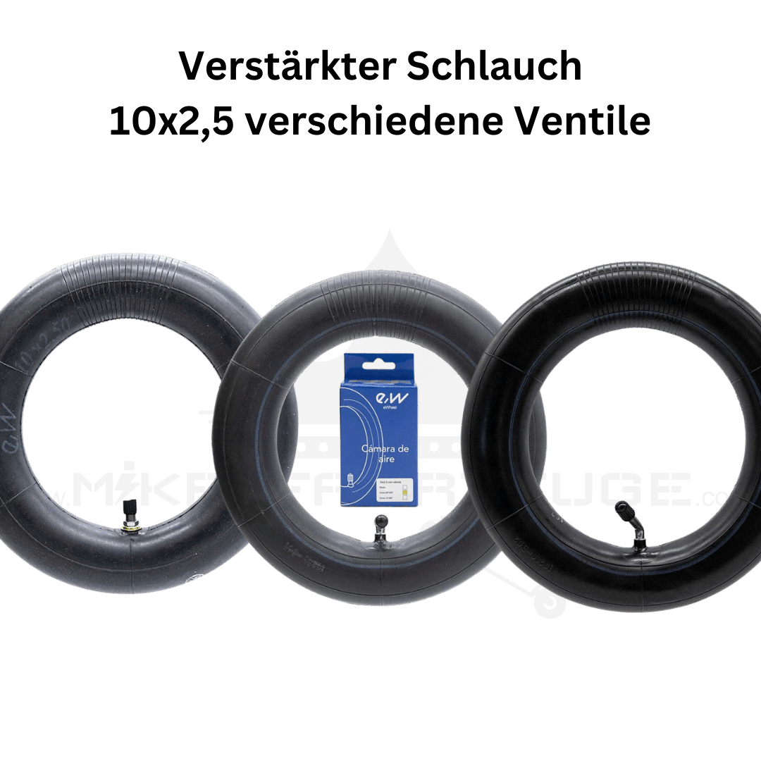 Der verstärkte E-Scooter Schlauch 10×2,5 ist die ideale Wahl für alle, die weniger Pannen, mehr Komfort und höhere Haltbarkeit suchen. Dank der wählbaren Ventilwinkel passt er sich flexibel an unterschiedliche Fahrzeuge und Felgen an.