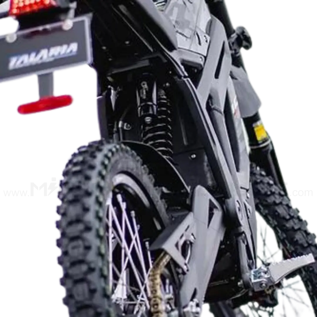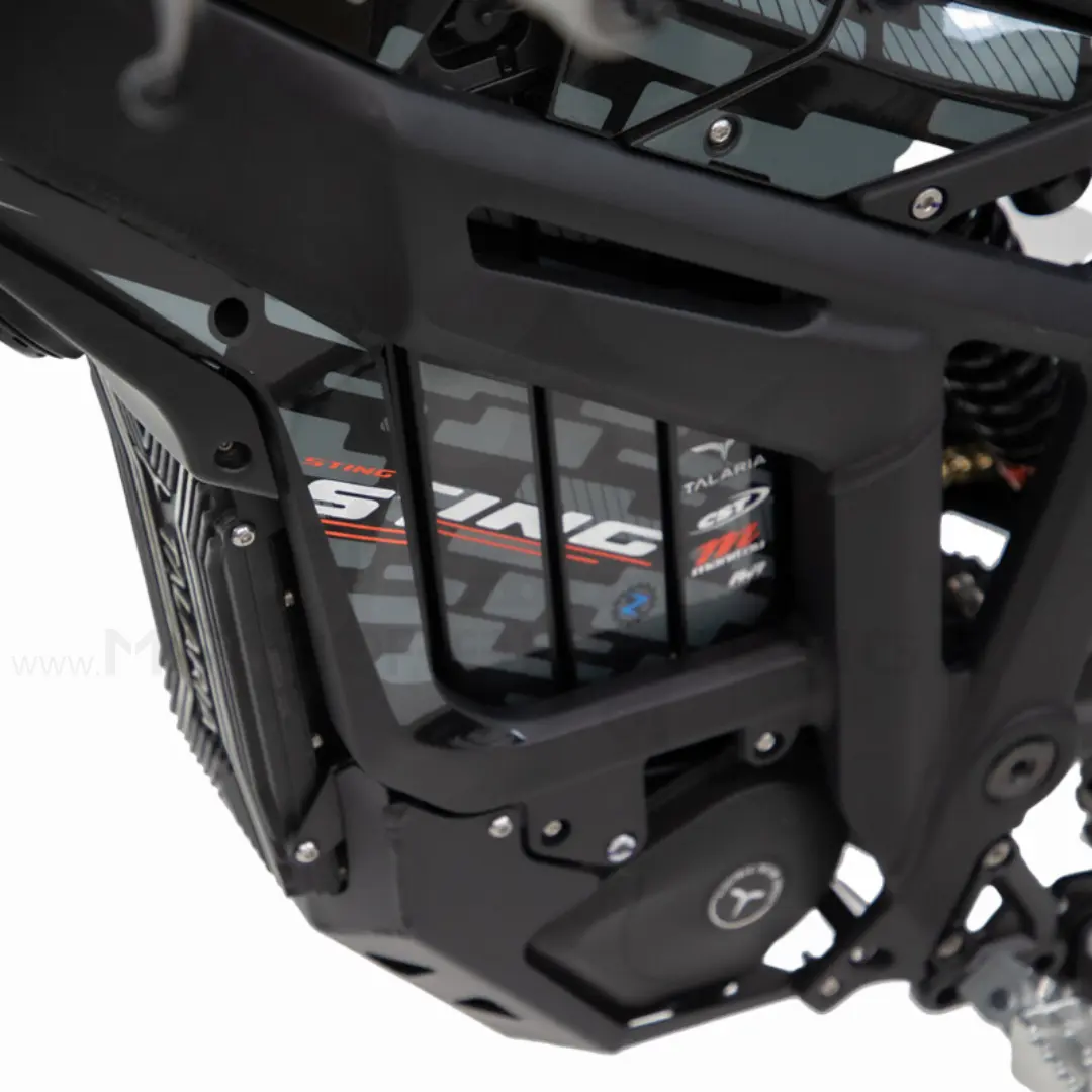 Der maßgeschneiderte Kombinations-Antriebsstrang ist perfekt für das leichte elektrische MX-Bike. Der hocheffiziente bürstenlose Permanentmagnet-Synchron-Mittelmotor liefert ein Spitzendrehmoment von 34N.m und ein Spitzendrehmoment von 284N.m an das Hinterrad. Das Getriebe läuft noch leiser und ist viel langlebiger als alle Riemenantriebssysteme. Mit dem Talaria STING TL3000 hast du die volle Power mit der reinsten Energie und kannst unvergessliche Offroad-Abenteuer erleben.