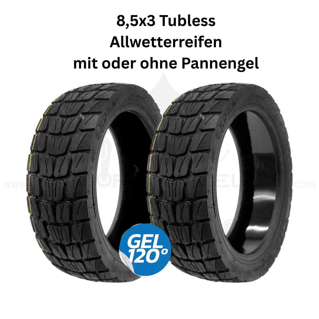 Der Tubeless Offroad Allwetterreifen 8.5×3 ist die perfekte Wahl für alle Fahrer, die mehr Grip, Sicherheit und Fahrkomfort aus ihrem E-Scooter herausholen möchten. Dank seiner speziellen weichen, aber dennoch extrem widerstandsfähigen Gummimischung bietet dieser Reifen ein herausragendes Fahrgefühl auf allen Untergründen – egal ob trocken, nass, matschig oder uneben.