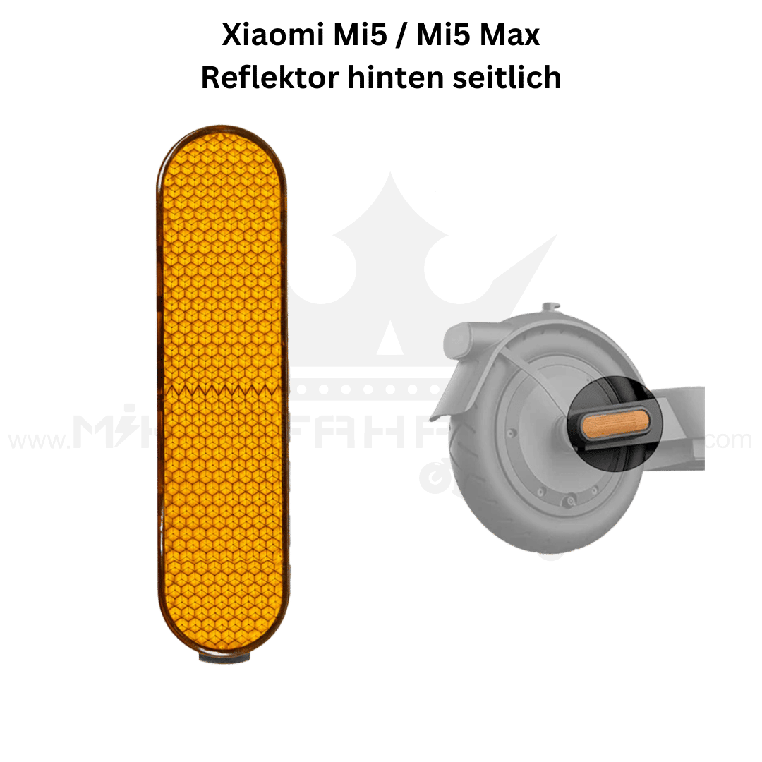 Die seitlichen Achsreflektoren für Xiaomi Mi5 und Mi5 Max erhöhen die Sichtbarkeit deines E-Scooters deutlich und sorgen damit für mehr Sicherheit im Straßenverkehr. Die Reflektoren werden seitlich an der Hinterachse montiert und reflektieren einfallendes Licht zuverlässig – ideal für Dämmerung, Nachtfahrten oder schlechte Wetterbedingungen.