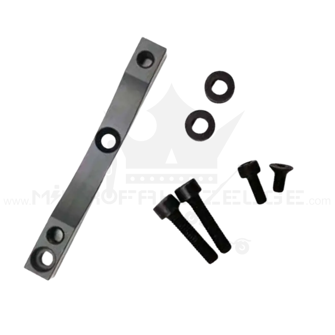 Unsere Bremshalterung/Adapter aus verstärktem Metall ist perfekt für dich, wenn du auf der Suche nach einem langlebigen und zuverlässigen Ersatzteil bist. Das Material ist robust und widerstandsfähig, sodass es selbst bei starker Belastung nicht bricht oder beschädigt wird.