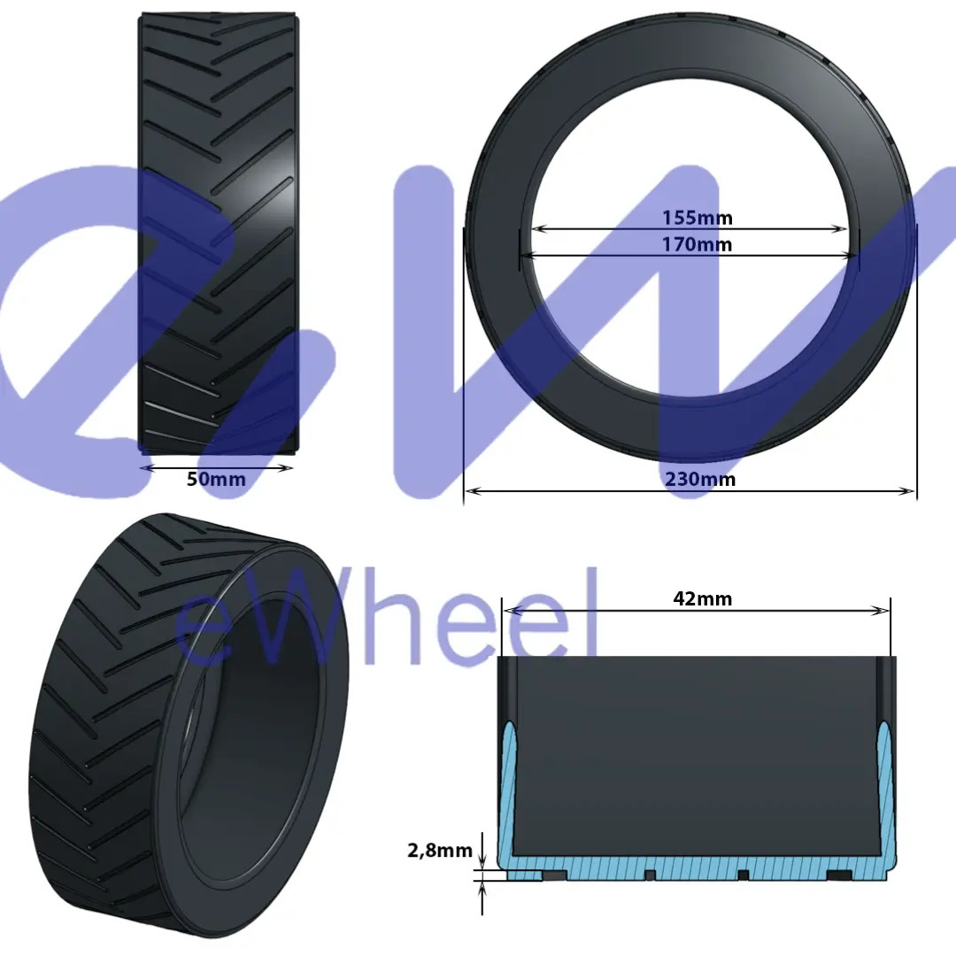 Auch mit 8,5*2 Modellen ist er kompatibel. Mit einer Reifenbreite von 50mm, einem Gesamtdurchmesser von 230mm und einer Profiltiefe von 2,8mm bietet Ihnen der Reifen eine perfekte Kombination aus Stabilität und Agilität.
